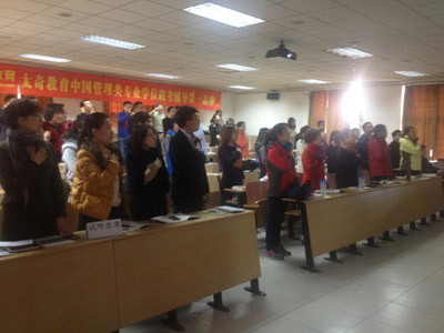 為了激發(fā)學(xué)員的學(xué)習(xí)斗志,宋校長帶領(lǐng)全體學(xué)員進(jìn)行入學(xué)宣誓,“我們胸懷實業(yè)報國之志,致力于中國企業(yè)管理水平之提高;我們齊聚在太奇的課堂里,相互友愛,用青春與熱血為志向而奮斗……”每個字,每句話都是那么刻骨銘心,在場的每一位學(xué)員都散發(fā)出對成功渴望的目光,他們堅信:努力必能成功!